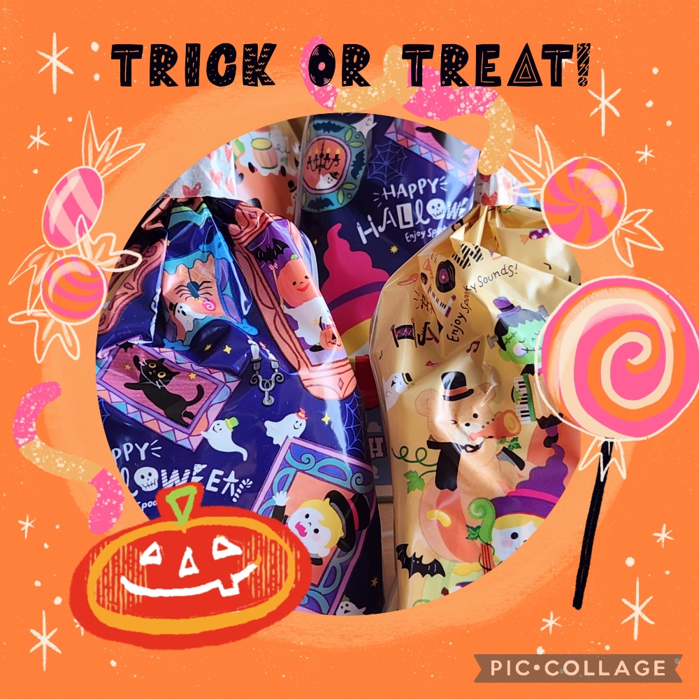 まずは…音楽クイズを解いてからの「トリック・オア・トリート!」の合言葉でお菓子を差し上げています😊